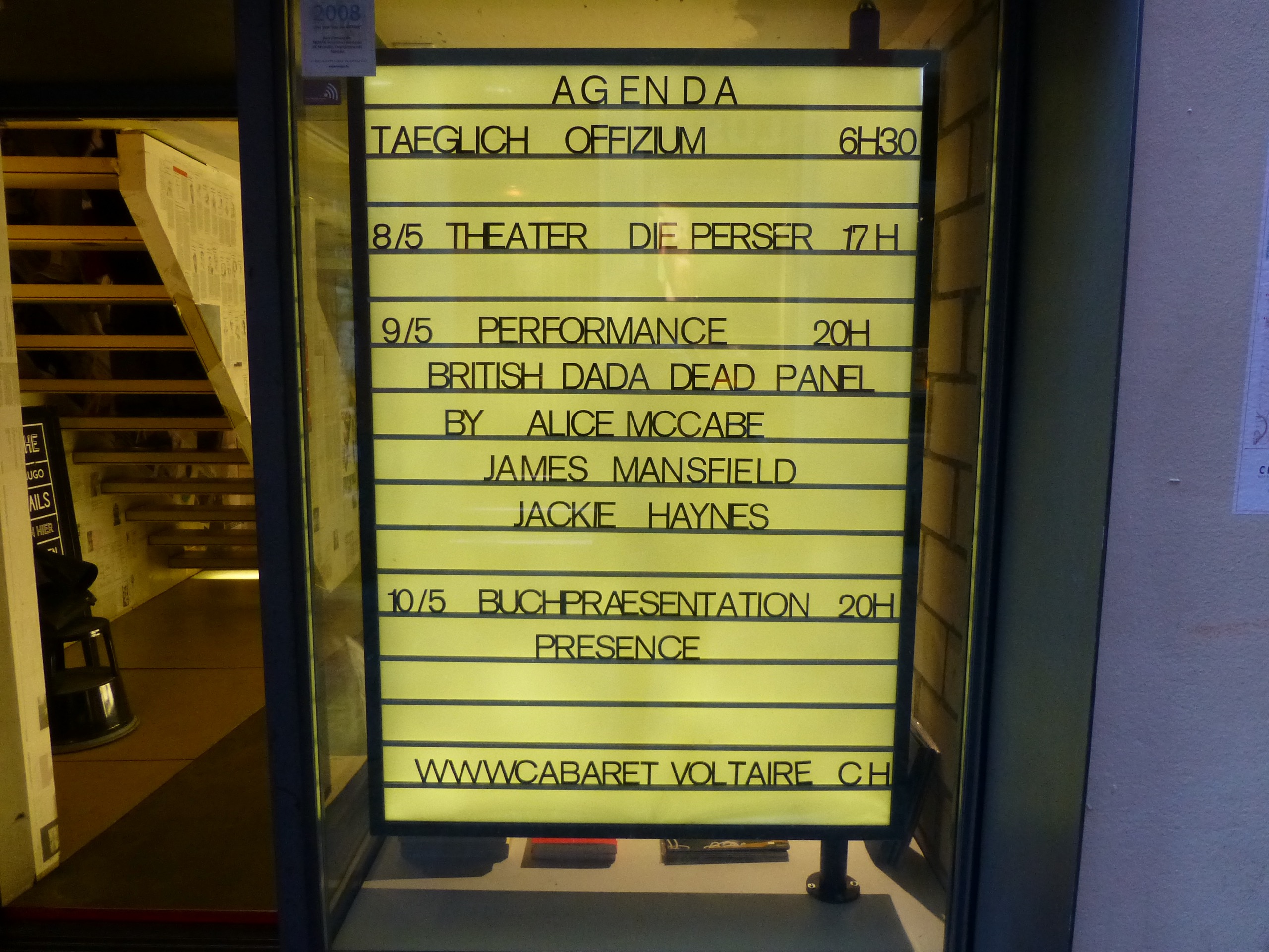 14.02.13 // DADAbend 4 at Cabaret Voltaire organized by DADAmt = St.Pauli. lights and timed acts of six minutes controlled by the audience.